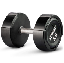 Dumbbell Premium Action Gym: monobloco fundido, pegada inox anti-ferrugem, blindagem silenciosa anti-impacto. Zero manutenção, durabilidade vitalícia. Personalize com sua logo!